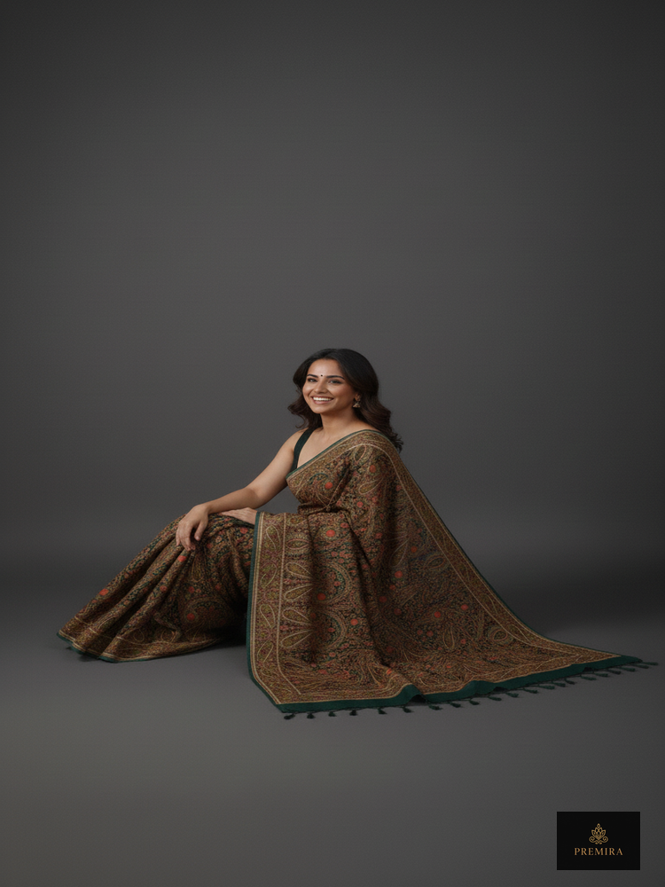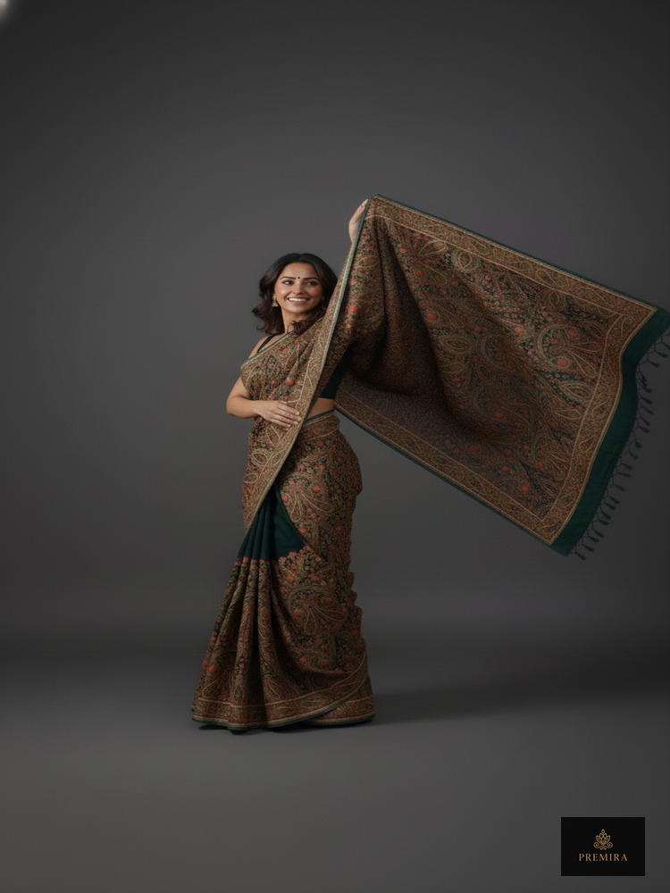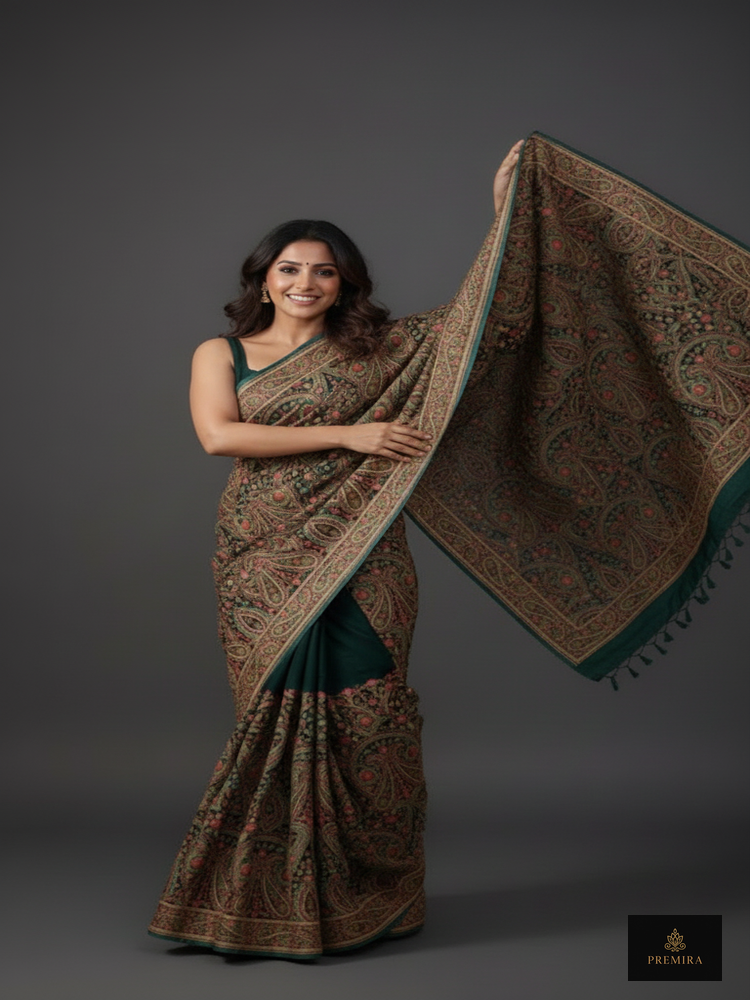 Forest Green Kashmiri Saree